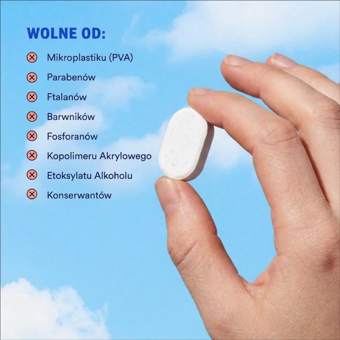 Twoje tabletki do zmywarki nie powinny pozostawiać na naczyniach warstwy agresywnych pozostałości chemicznych, które mają później kontakt z jedzeniem. Wiele tradycyjnych detergentów zawiera substancje takie jak syntetyczne zapachy, barwniki, rozjaśniacze optyczne czy fosforany. Wierzymy w skuteczne zmywanie bez zbędnych dodatków chemicznych — tak powinna wyglądać prawdziwie czysta kuchnia.